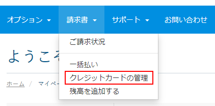 2.上部メニュー「請求書」の「クレジットカードの管理」をクリックします。