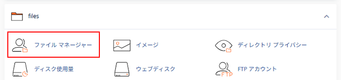 2.「files」の「ファイルマネージャー」をクリックします。