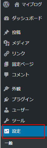1.WordPressの管理画面にログインし、左側メニューの「設定」をクリックします。